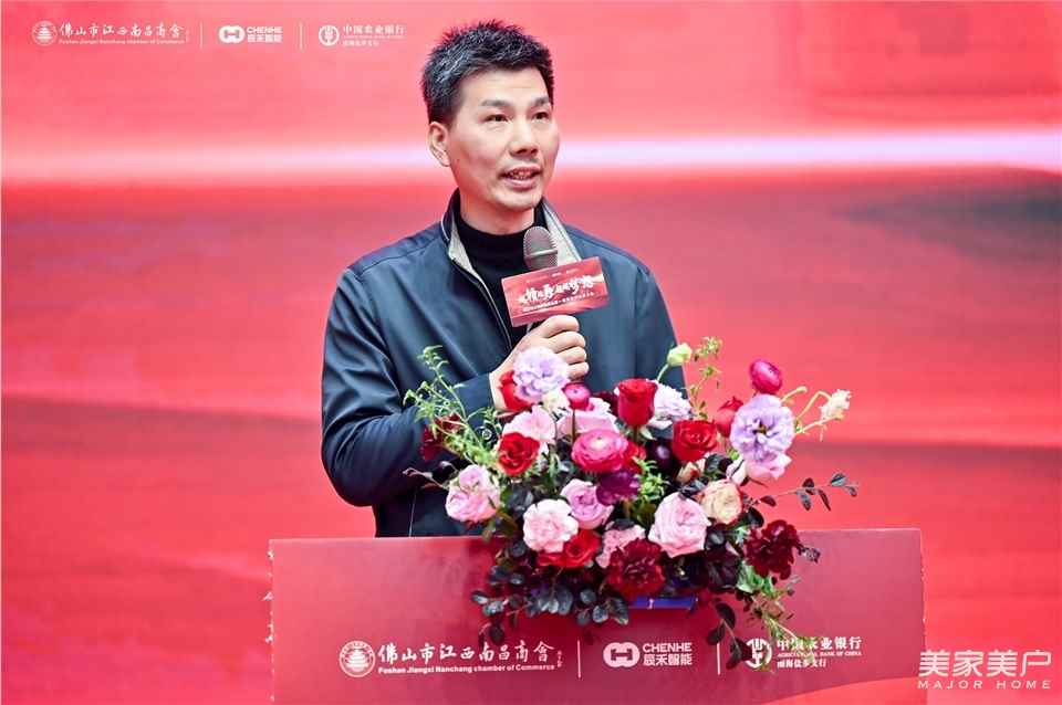 广东省门业协会执行会长徐生致辞,徐生在致辞中表示,佛山市江西南昌商会在成立的四年里,不断发展壮大,会员数量也一直在不断的增长,仅江西安义县就有40万人从事门窗行业,为中国门窗行业做出了重要的贡献。