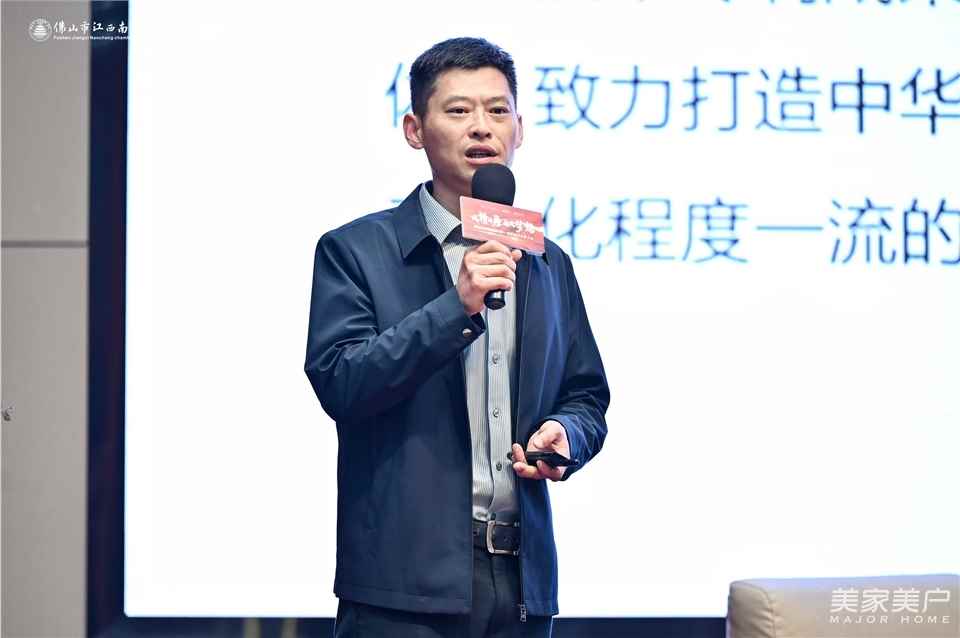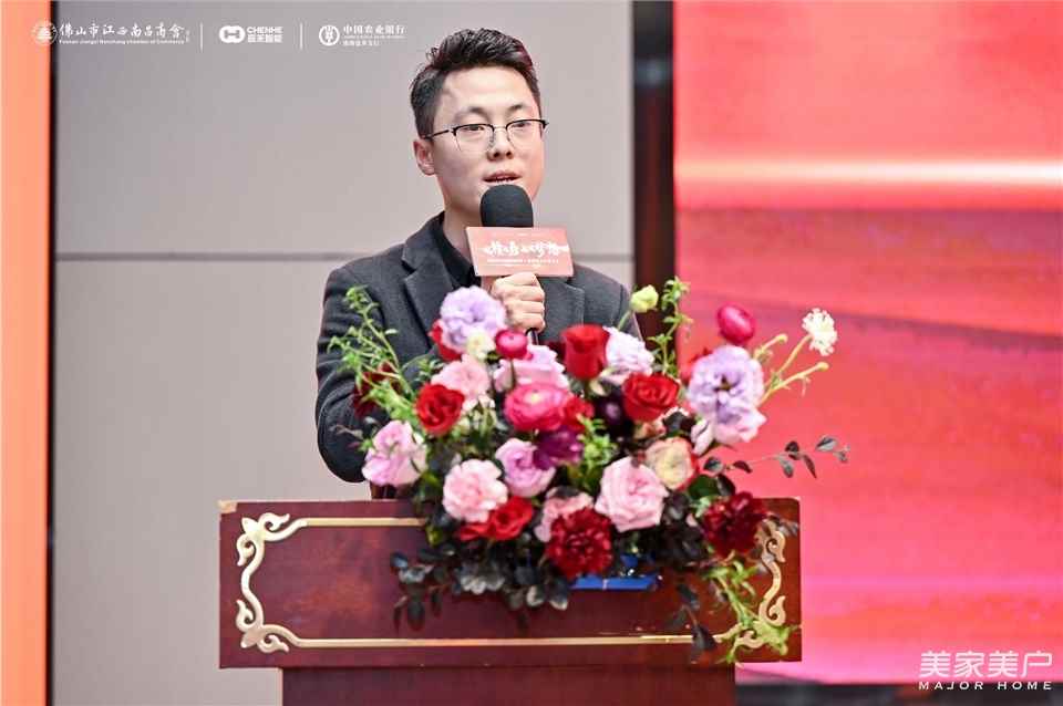 山东辰禾智能装备有限公司总经理周光新致辞,周光新在致辞中提到,佛山作为家装门窗的聚集地,辰禾智能装备有限公司的产品可以为门窗企业提高生产效率。