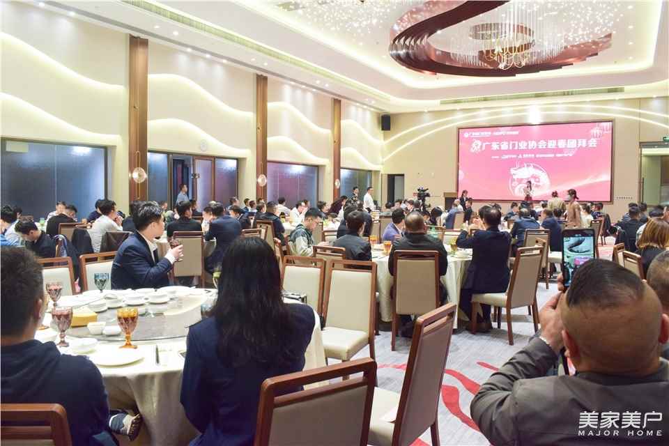 以及广东省门业协会生态门专委会秘书长赖连才,中国建博会(广州)门窗项目负责人王鹏,兴三星董事长屠世顺,兴三星华南大区总经理王海刚,万加门窗董事长万国强,享裕安门窗董事长黄秋盛,雅洁五金董事总经理曹汉添,雷德数控董事长张爱民,保罗汉纱门窗董事长罗振海,丽宫门窗总经理梁国南,丽宫门窗营销总经理韦金坤,创家阳台董事长陈上明,粵莱美胶条总经理冉梅,名人木门董事长赵力专,德客角码总经理梁飞龙,同福门业董事长黎铭彪,鼎诚门业董事长梁玉林,花王涂料总经理张玉洁,金羊门业总经理麦宗民,红橡树门窗董事长黄以光,翔升木业董事长温小明,亮阁门窗董事长李启秋,意群门窗董事长徐红喜,简纳斯门窗营销总经理梁锦瑞,创高门窗总经理熊亮,博仕门窗技术总工李德初,品贵门业董事长罗云强,德嘉印象董事长关伟镜,晟王门业董事长王日成,大国门窗董事长杨垂平,博友玻璃董事长李芳娥,欧的门窗董事长冯宝威,荣基总经理刘进容,坚朗总经理彭海洋,杭州之江华南销售总监陈昂,麓特丹董事长郭虓,玛克塑料董事长郭庆,镭科营销总监孙树涛,佳桦总经理杜文龙,华建辛卫亮,合辉铝材副总经理叶广智,博升滑轮总经理战志华,雅晨保护膜董事长陈选辉,钢亦美总经理王勇权,皇家正图余玩生,金工机械CEO梁锦玲,海富纳董事长李海田,盛锋五金董事长禤家锋,鑫富泓总经理罗铁流,凯盛科技总经理刘阳震,金立丰模具董事长黄国强,以及阿尔卑斯门窗、威亚森门窗、美之选门窗、创高门窗、易慧家科技、福临门世家门窗、富轩门窗、慧宁门窗、普天安、天辰、玉威、新艾隆、澳顺胶条、帝硕超级滑轮、库勒五金、诺维索玛等协会领导、企业相关负责人及代表,近200人参加了此次团拜会。