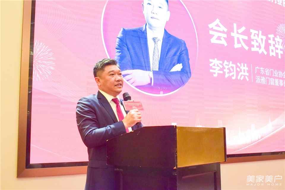 广东省门业协会会长、派雅门窗董事长李钧洪首先为晚宴致辞。李钧洪表示,“过去几年,广东门窗人自强不息,坚韧不拨,共渡时艰,打造出了中国定制门窗产业基地的响亮名片。2024年,让我们继续做追梦者、奋斗者,凝心聚力,携手向前,再创辉煌。”