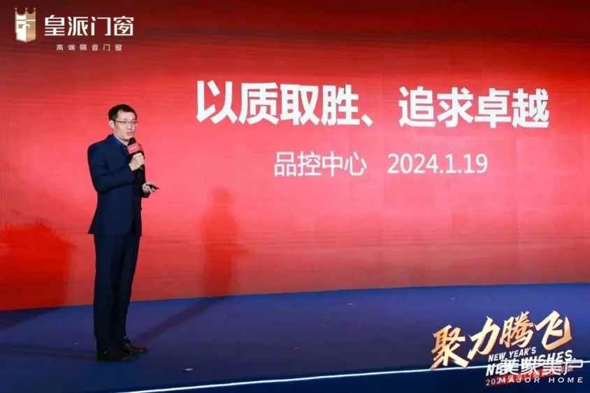 随后,皇派门窗副总经理朱梦思发表了演讲,用“回暖破冰、破卷求稳、砥砺前行”三个关键词总结了皇派门窗过往一年的赋能自我、破局谋新之路。对于2024年,朱梦思也向大家提出了殷切期待,并强调到,无论何时,全体皇派人都需磨炼专业,围绕产品创新、客户体验等多维度持续优化,不余遗力地攀登高峰,追逐属于皇派人的荣光与梦想。