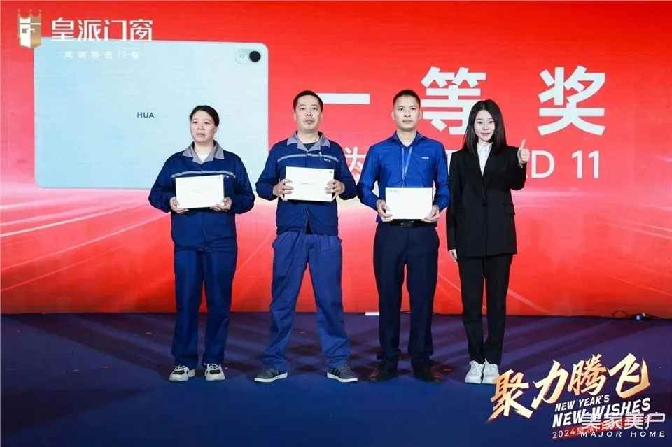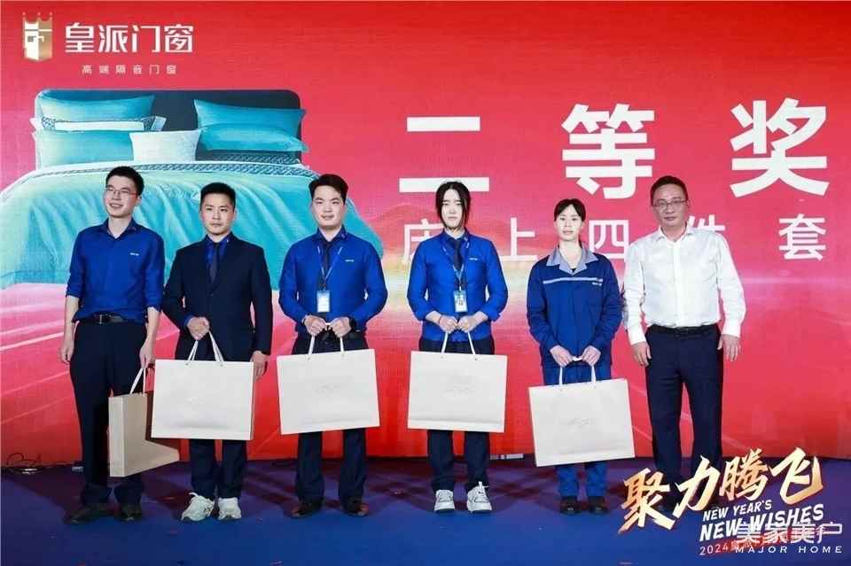 本次年会,全体员工欢聚一堂,通过龙腾四海、问鼎龙耀、藏龙卧虎、龙行大运四个篇章,皇派门窗不仅带来了一场场精彩纷呈的节目表演和多轮幸运抽奖,还设置了一个个含金量十足的奖项,并向优秀代表进行表彰,为他们颁发荣誉奖项,激励奋发向上的皇派人携手共绘美好2024年的新篇章。