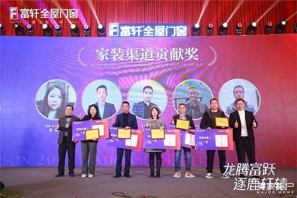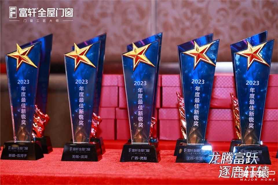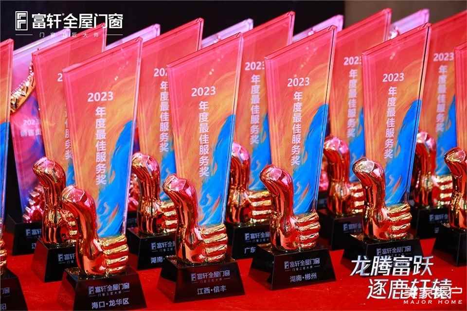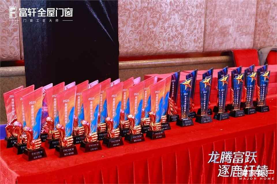 接下来晚宴进入到颁奖环节,富轩全屋门窗门窗对在2023年度为富轩作出重大贡献、取得辉煌战绩的富轩家人代表进行表彰和加冕。
