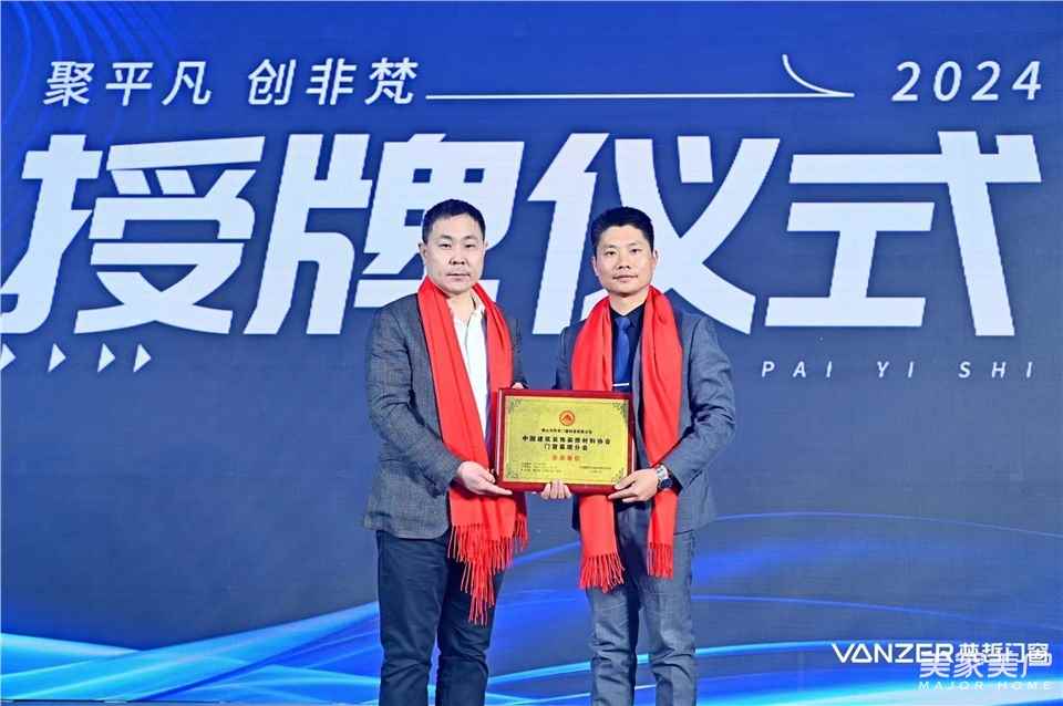 现场,中国建筑装饰装修材料协会门窗幕墙分会秘书长丁辉为梵哲门窗颁发了协会会员单位牌匾。梵哲门窗营销总监张小虎上台接匾,授牌仪式的举行,标志着梵哲门窗迈入了国家级协会的行列。