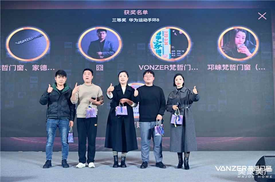 为了鼓励作出积极贡献的经销商,梵哲门窗举行了隆重的颁奖典礼,现场颁发了销售冠军、亚军、季军,杰出贡献奖、最佳渠道奖、市场先锋奖、锐意进取奖、最佳团队奖、卓越贡献奖、最佳新锐奖等奖项。梵哲门窗勉励大家再接再厉,用各自的优异成绩为公司的各项建设添砖加瓦,实现梵哲门窗再攀新高的目标。