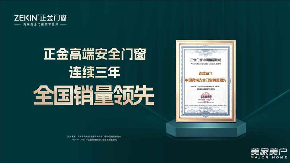 正金门窗:连续三年中国高端安全门窗销量领先| 权威认证 实至名归