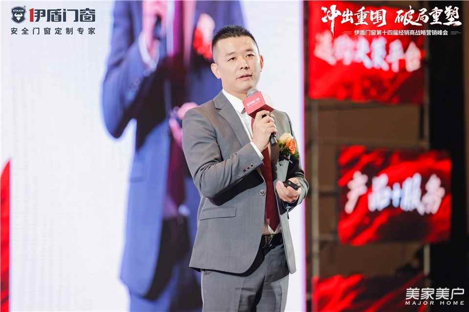 伊盾门窗营销中心副总经理王璇伟在《五力合一 冲出重围》的主题演讲中提到,伊盾总部将为门店提供“五力合一”的强保障,门店搭乘“伊盾”这辆高铁,以规模和服务为根,狠抓五好、深耕小区,定能冲出重围。