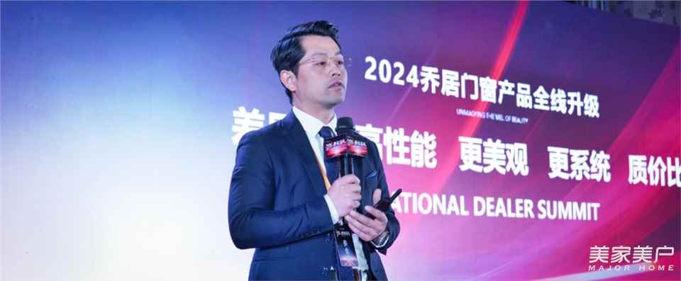 有句话叫“创新才是品牌永远不变的护城河”,峰会上,乔居门窗招商总监卢礼良先生进行了2024年度首次新品发布。此次新品研发团队耗时数月,不断改善,不断测试,不断打磨,最终才得以面世。新品从性能与美学方向出发,升级核心亮点,打造了包含冷热压缩阻隔式隔热条、悬浮式填充工艺、TES玻璃、4SG玻璃的乔居门窗3代恒温系统和包含极简斜边竖挺、维哈根保时捷执手的2.0外观体系。品质和设计上更大程度地迎合消费者的需求,助力终端抢占市场,也为消费者带来全新的家居体验。