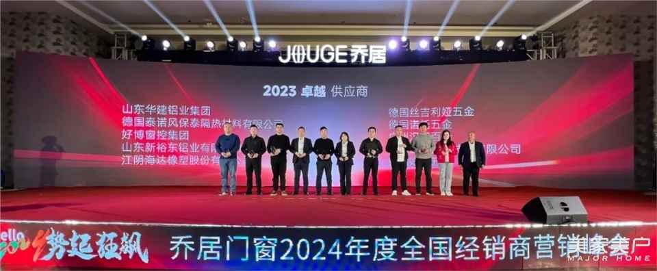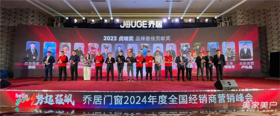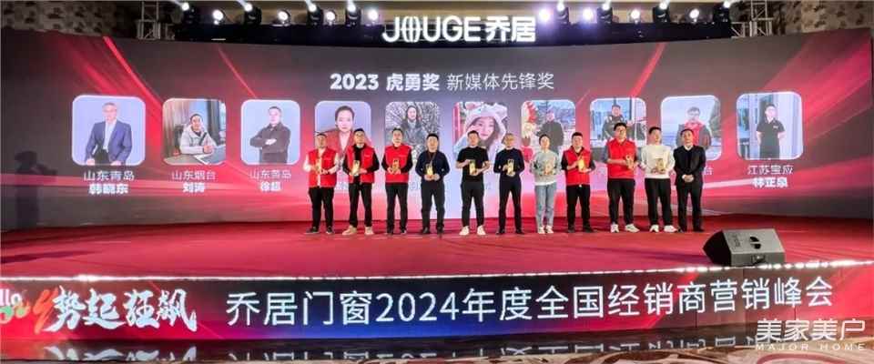 虎跃奖—2024年度最佳新秀经销商,他们是乔居的新星,是市场的佼佼者,是潜力的代表。他们拒绝平庸,勇于超越,为乔居发展提供了不竭动力,为乔居门窗的腾飞添上了靓丽色彩。