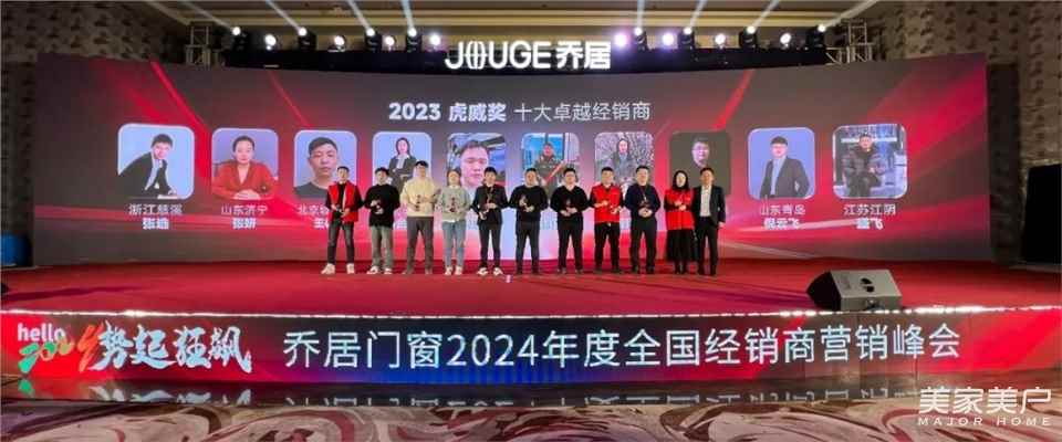 虎威奖—2024年度十大卓越经销商,他们勇立潮头,锐意进取,勤于学习,不断提高团队能力,深耕客户价值,是乔居门窗的中流砥柱,在行业内高歌猛进,引领风骚。