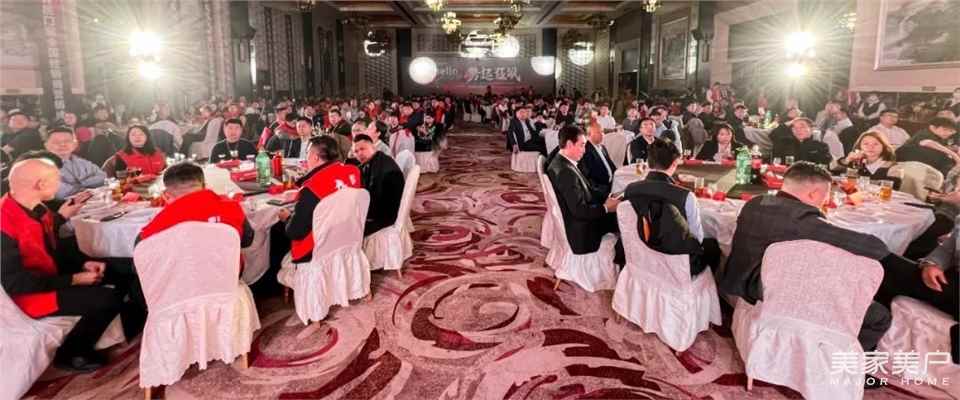 宴会上,乔居门窗联合创始人卢礼良先生上台祝酒,感谢各位嘉宾的远道而来,恭喜他们取得的成绩、获得的奖项,预祝2024万事兴龙。全体人员共同举杯,共享美好时刻。