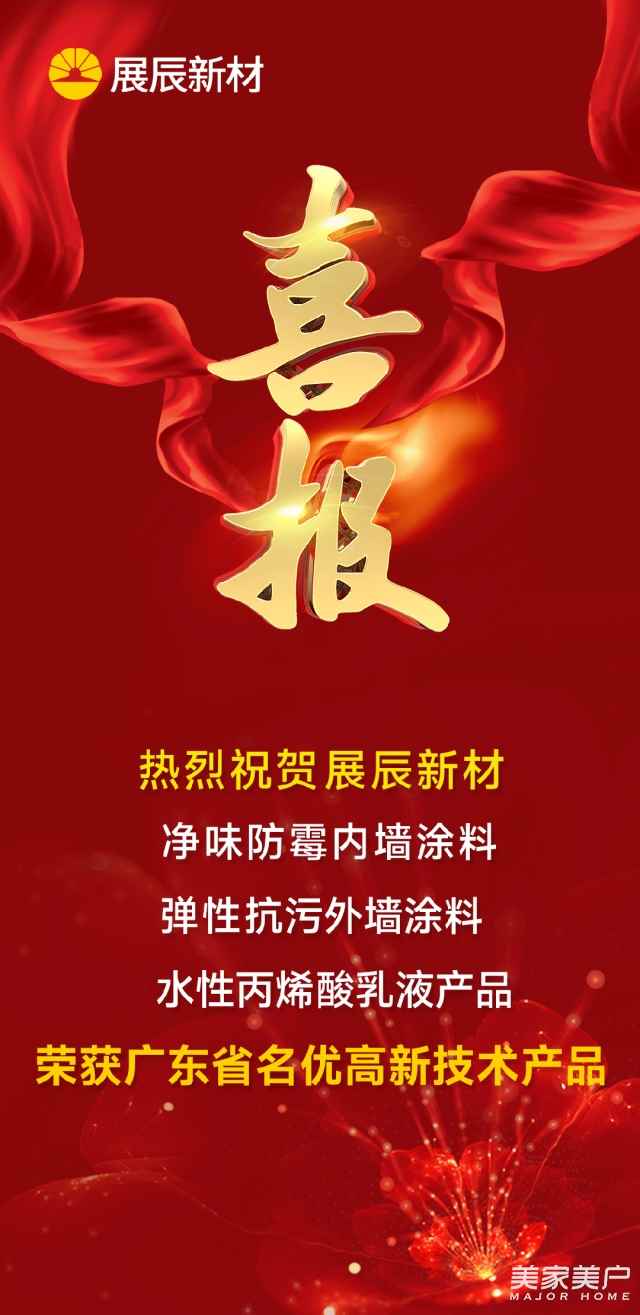 近日,展辰新材再传喜讯,公司旗下净味防霉内墙涂料、弹性抗污外墙涂料、水性丙烯酸乳液产品获得广东省名优高新技术产品。