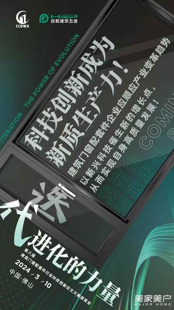 在此背景下,为响应科技进步带来的产业变革需求,由中国建筑金属结构协会主办、建筑门窗配套件委员会执行实施、广东合和建筑五金制品有限公司独家全程资助的“迭代·进化的力量”——第八届建筑门窗配套件行业科技创新论文大赛颁奖会将于3月10日在佛山盛大召开。