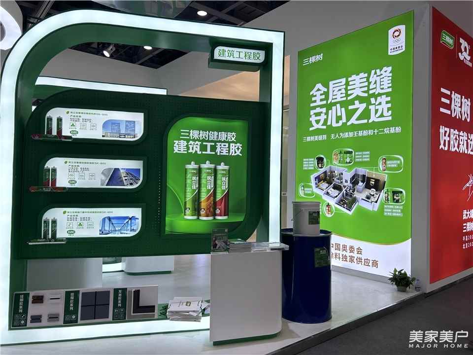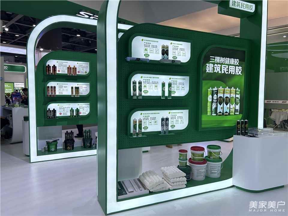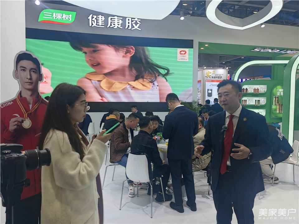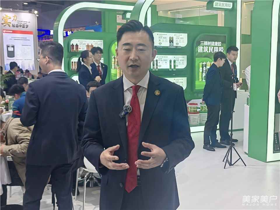 董鹏华:此次展会,我们携带了很多行业里面领先技术的一些产品,比如:MS胶,以及工程领域的高端胶,包括我们的新能源胶、工业胶、电子胶等等。我们展出的产品不仅涉及到建筑方面,还有工业及电子、新能源等各个品类。主要涉及到胶粘剂品类的产品,我们在展会上都有产品的展示。我们历经多年的长足发展,三棵树的胶粘剂产品已经形成了全屋体系,如:美缝产品。只要消费者找到我们三棵树,我们都可以为消费者提供全方位的、整个屋面体系的胶粘剂与美缝体系的系列产品。