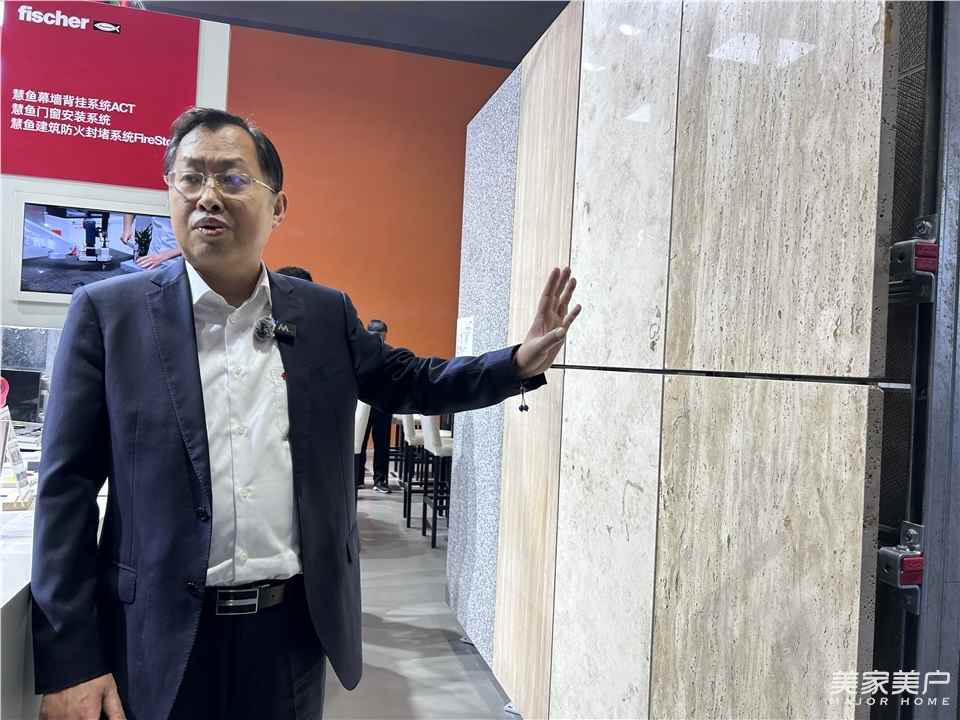 赵麟:这次展会我们做了一个幕墙的模型,它涉及到所有的石材、天然石材和人工板材,通过我们的被挂系统、被栓系统,进行悬挂。这是我们从德国引进的技术,已经在中国应用了二十几年。我们的一些锚固件主要应用在门窗、幕墙、公共建筑、工业建筑、基础建设上。此外,还带来了背挂系统、幕墙预埋槽系统、厕卫密封胶以及在工程领域应用的锚栓。