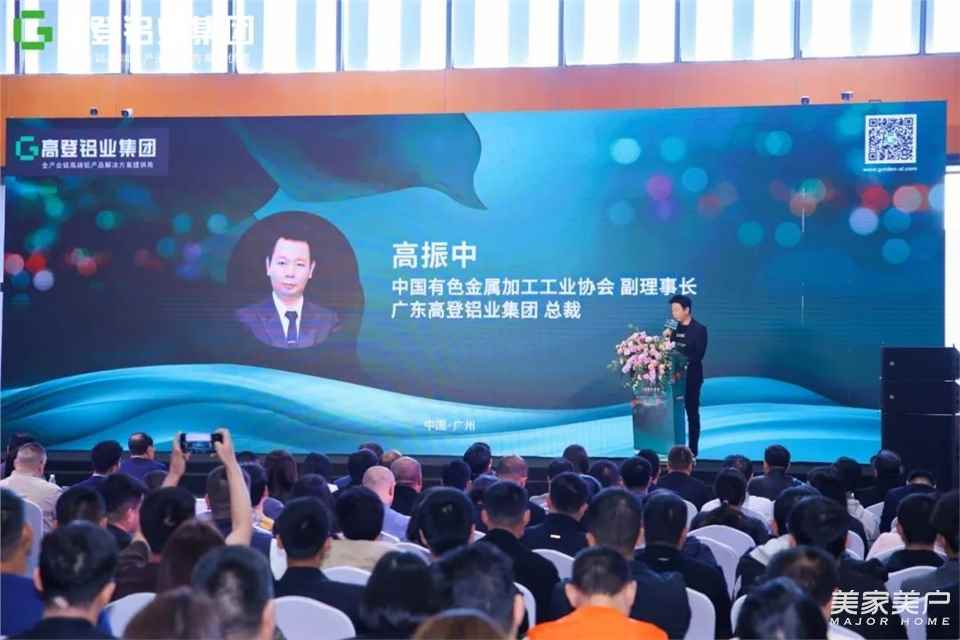 广东高登铝业集团总裁高振中先生首先为活动发表致辞,对莅临活动现场的领导嘉宾表达欢迎及感谢,并表示:高登1985年创立,在扎实迈进高质量发展的39年间载誉前行。国家高新技术企业、亚洲品牌500强、中国铝材十大品牌、广东省专精特新企业等多项荣誉背后,是高登不断打破人类传统想象和产品应用边界,造就性能与外观结合、科技与自然共生、色彩与时尚相融、视觉与触觉统一的独特美学体验,为建筑、家居、装饰、工业、新能源汽车等领域保驾护航,引领行业高端表面色彩美学流行走向。今天这场发布会,诸多专家前辈、家人伙伴为一份美好事业而相聚于此,和高登携手颠覆传统美学理念,重新定义属于中国铝材的独特审美,唤醒新一番行业发展生机。时代奔涌向前,高登也将继续守正创新,把握行业发展脉搏,创领美学时尚新趋势,输出更多高端特色产品,助力行业高质量发展,向世界展示“中国色,中国美”的高端民族品牌形象。