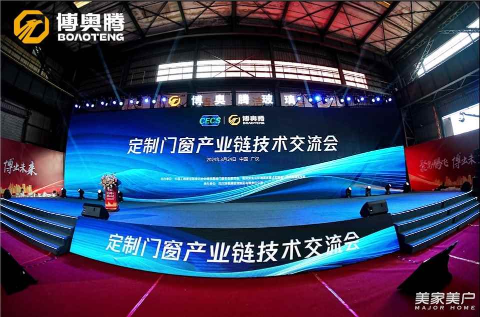 3月24日,在博奥腾玻璃智慧生产线启动庆典上,定制门窗产业链技术交流会同期举行。中国工程建设标准化协会幕墙门窗专业委员会主任王洪涛、中国工程建设标准化协会建筑募墙门窗专业委员会秘书长刘会涛、中国国检测试控股集团股份有限公司玻璃事业部总经理韩松、广东省门业协会执行会长徐生、广东省门业协会秘书长饶德亮、博奥腾玻璃总经理钟健、博奥腾玻璃副总经理李运波、飞宇门窗董事长陈仪、派雅门窗总经理易绍光、轩尼斯门窗副总裁余家优、老赖不赖门窗董事长赖世佑、雅之轩门窗董事长郑伟、良木道集团副总经理骆吉彬等领导和嘉宾,与门窗行业上下游企业代表齐聚一堂,就定制门窗行业的高质量发展,进行深入交流和探讨。