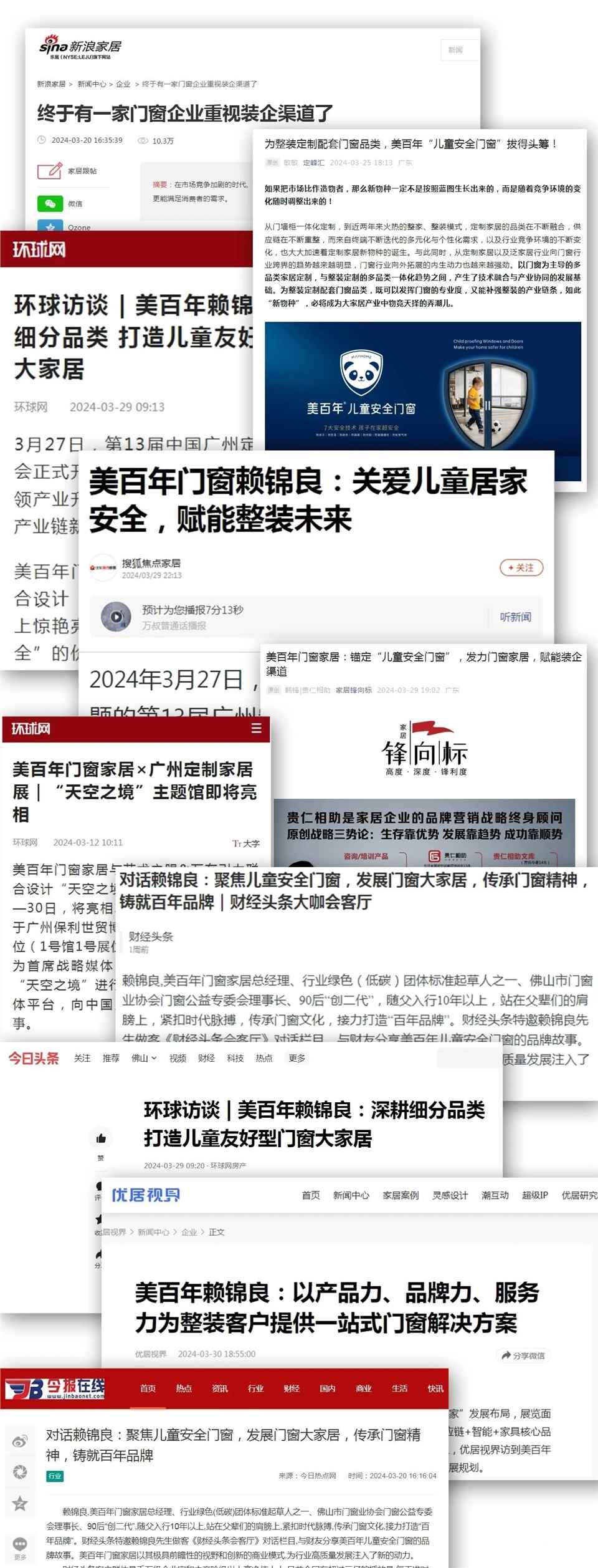央媒代表环球网家居,财经头条,行业媒体泛家居圈,伟德国际公司,主流门户新浪家居、搜狐、腾讯,中华门窗网,网红自媒体等多个媒体争先报道,以媒体力量,传播“天空之境”的设计初心,为未能来现场的用户朋友们实现“云观展”,让更多用户和商家了解到美百年“门窗定制+全铝定制”的产品实力和“连锁门店零售”+“整装装企渠道”的合作模式,助力“儿童安全门窗家居”可以通过更多元化渠道触达用户。