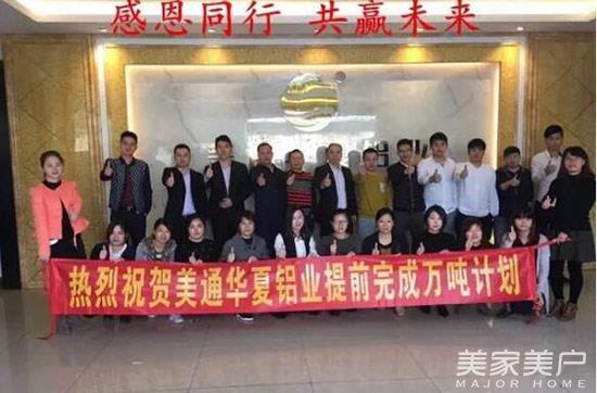 2016年,是我们美通华夏铝业欢乐和收获的一年,更是我们厚积薄发、阔步前行的一年。在“创导尖锋理念、打造梦幻团队、整合顶级资源”坚定的公司核心经营理念的指导下,企业呈现出良好的发展势头,谱写着2016年辉煌的新篇章。截止至2016年11月底,我们美通华夏铝业销售中心提前完成1万吨型材的年度计划。在此,我们怀着无比激动的心情向全国各地经销商说一声:谢谢你们的鼎力支持、谢谢你们的充分信任、谢谢你们的风雨同舟!