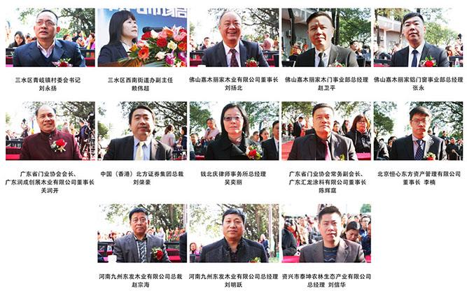 三水区西南街道办副主任赖伟超、三水区青岐镇村委会书记刘永扬、佛山嘉木丽家木业有限公司董事长刘扬北、佛山嘉木丽家木业有限公司总经理刘新林、佛山嘉木丽家木门事业部总经理赵卫平、佛山嘉木丽家铝门窗事业部总经理张永、广东省门业协会会长、广东润成创展木业有限公司董事长关润开、中国(香港)北方证券集团总裁刘棨豪、钱北庆律师事务所总经理吴奕丽、广东省门业协会常务副会长、广东汇龙涂料有限公司董事长陈辉庭、北京恒心东方资产管理有限公司董事长李楠、河南九州东发木业有限公司总裁赵宗海、河南九州东发木业有限公司总经理刘明跃、资兴市泰坤农林生态产业有限公司总经理刘信华以及各企业代表:广州冠军木业有限公司、佛山耀坤木制品有限公司、广东汇泰龙科技有限公司、佛山市顺金美金属制品有限公司、海富纳(中国)集团、佛山金世界创新铝业有限公司、佛山市富球铝业有限公司、佛山市润创五金制品有限公司等共同见证了嘉木丽家历史性的一刻,深圳伟德betvlctor旧版对这次盛会进行了全程的跟踪报道。