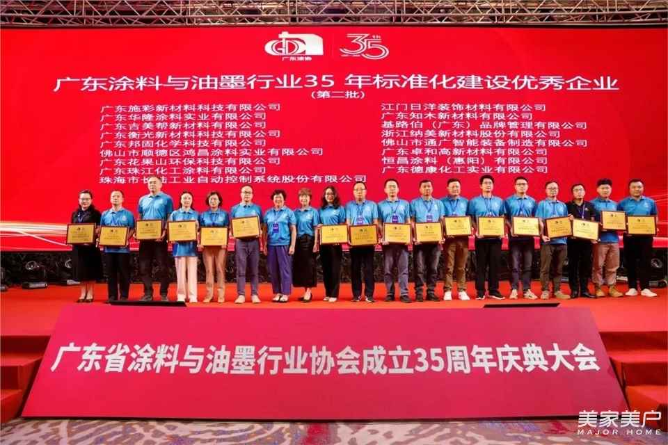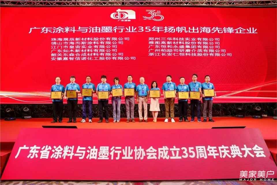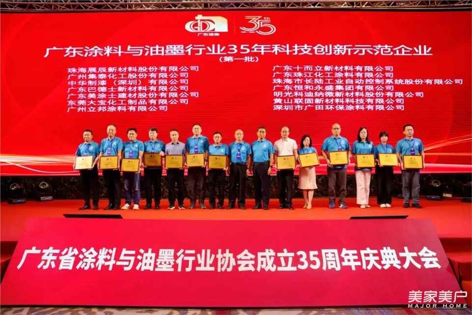 2024年,是中华人民共和国成立75周年,也是广东省涂料与油墨行业协会成立的35周年。为纪念广东省涂料与油墨行业协会成立35周年,全面展示广东涂料35年来所取得的显著成就,进一步加强对广东涂料发展的总结、宣传、推广,在本次大会上,隆重表彰了一批优秀企业,以及有突出作为和贡献的个人。