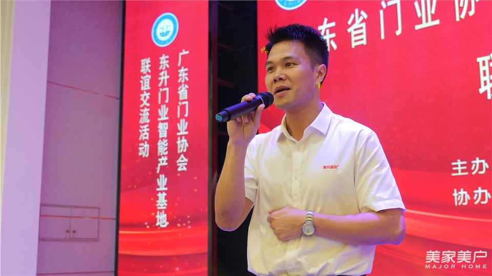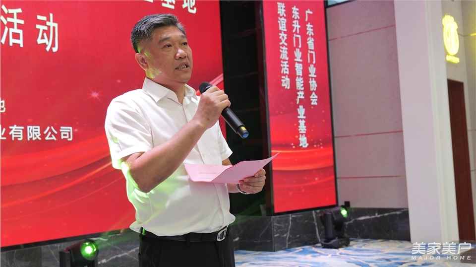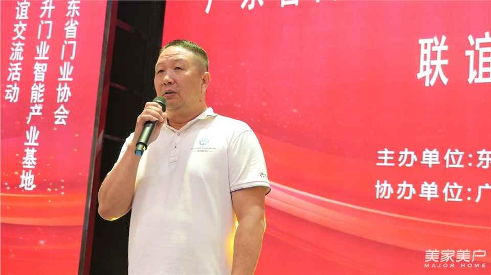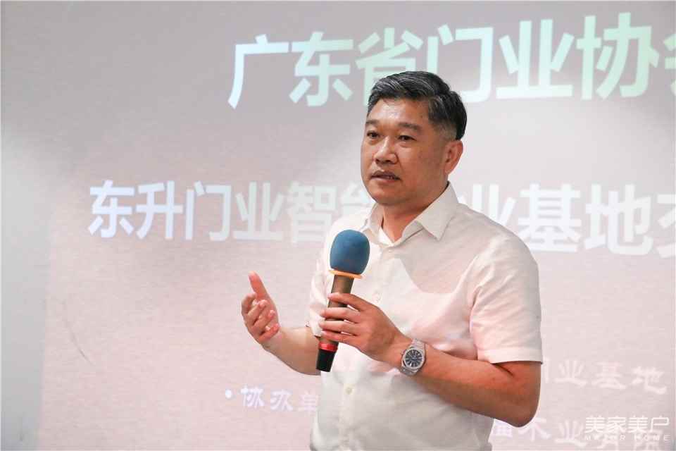 广东省门业协会生态门专委会会长、掌门人董事长廖健升在座谈会上致辞