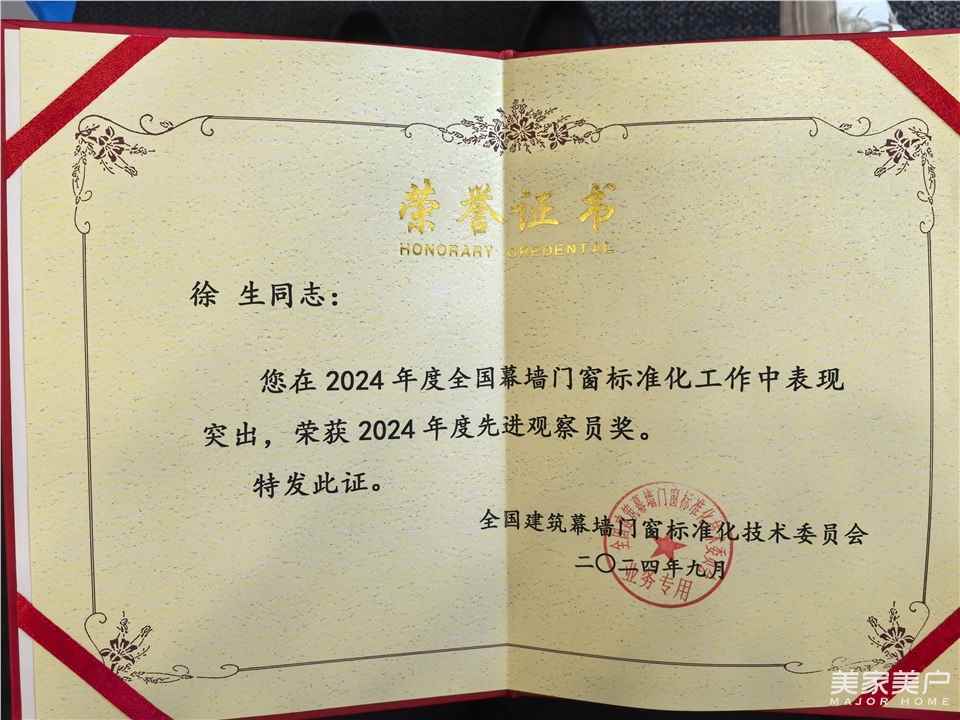 此外,会上对标准化先进单位和个人进行了表彰,并对新加入观察员颁发了证书。广东省门业协会执行会长徐生被授予“2024年年度先进观察员”殊荣。