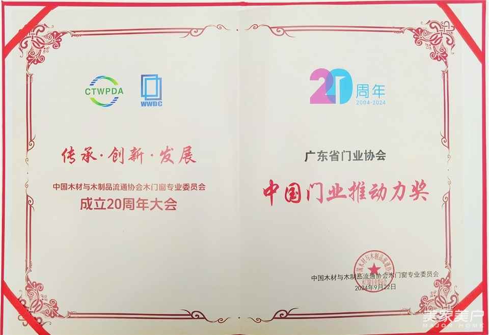此次荣获“中国门业推动力奖”,不仅是对广东省门业协会过去努力的肯定,更是对未来发展的期许。让我们共同期待,广东省门业协会在未来的道路上继续发挥引领作用,推动门业不断向前发展,为家居产业的繁荣贡献更多的智慧与力量。