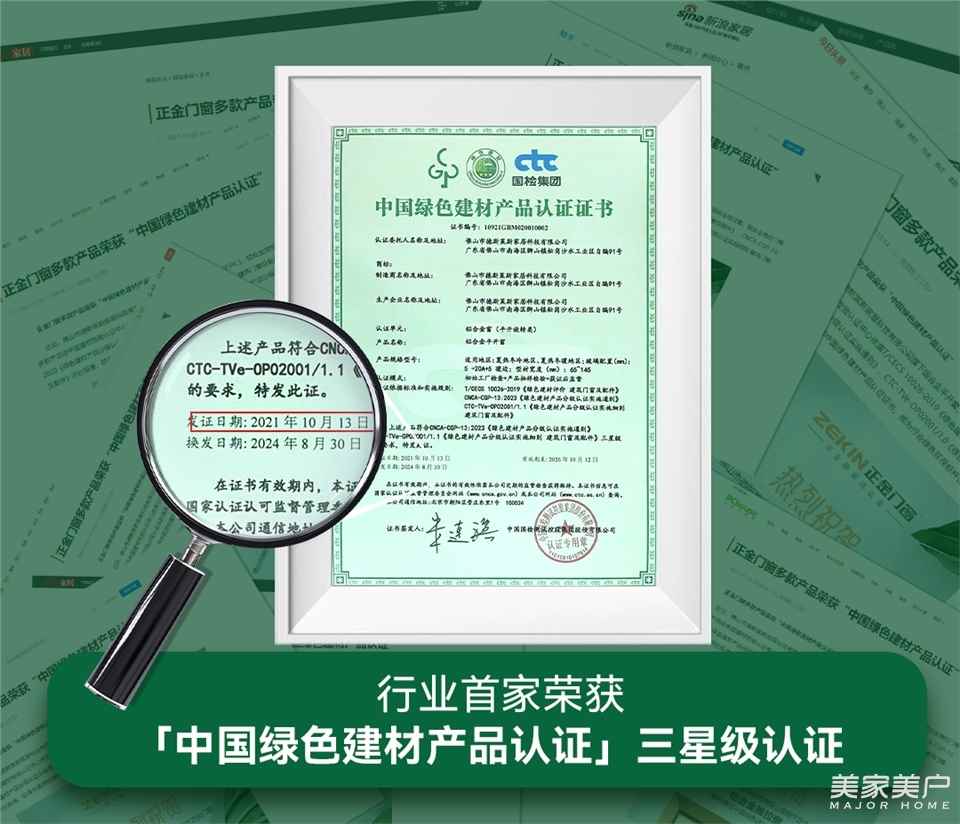 此次获得绿色建材认证,是国家权威机构和行业对正金门窗高品质、绿色低碳效能的充分肯定和认可,这不仅标志着正金门窗产品具有安全、环保、节能、低碳等重要特征,为官方认证的绿色健康建材产品,还成为了正金门窗在品质、口碑、先进性及环保性取得重大实践成果的有力见证。