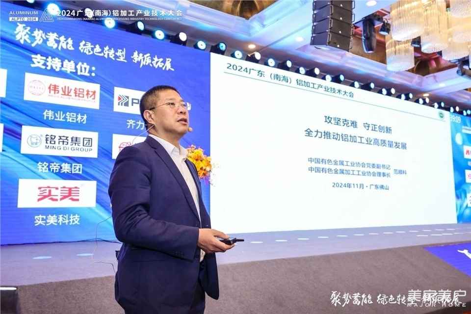 11月16日上午,由广东(南海)铝加工产业联盟和佛山市南海区铝型材行业协会主办的2024广东(南海)铝加工产业技术大会在广东南海开幕。中国有色金属工业协会党委副书记、中国有色金属加工工业协会理事长范顺科应邀出席,并作题为《攻坚克难 守正创新 全力推动铝加工业高质量发展》的主题报告;大会总冠名单位、广东凤铝铝业有限公司副总经理林玉金,佛山市南海区人民政府副区长劳剑锋,中国有色金属加工工业协会秘书长靳海明,陕西省工业和信息化厅党组成员、副厅长张康宁出席开幕式并先后致辞;广东(南海)铝加工产业联盟常务副理事长卢继延作《2024年广东(南海)铝加工产业联盟工作报告》;佛山市南海区委常委、大沥镇党委书记岑灼雄,佛山市南海区铝型材行业协会会长、广东华昌集团有限公司董事长潘伟深,江西省安义县委常委、县政府副县长谭翼直,中国有色金属工业协会副秘书长李德峰、轻金属部主任莫欣达,佛山市南海区铝型材行业协会秘书长苏天杰,与来自全国铝加工产业链和供应链的2600余名代表出席大会。