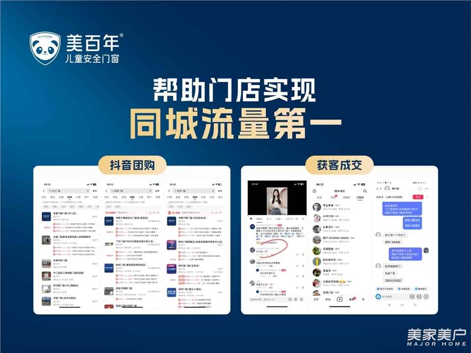 二是同城流量赋能。美百年搭建起一套以终端变现为核心的专业体系。通过社区营销、线上渠道、设计师渠道以及装企融合等多元渠道引流有效提升终端动销能力;深入线下陪跑,美百年总经理赖锦良还积极分享其开拓线上渠道的经验,并为经销商提供短视频运营培训,帮助他们提升销售业绩。通过一系列线上线下组合拳,美百年的同城流量赋能每月可为经销商带来几百至上千的精准客户资源。