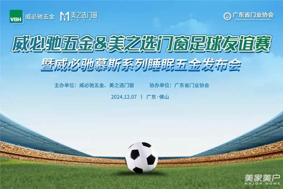 为了更好的加深门窗上下游企业之间的感情和互动,推动行业产品的良性发展,12月7日由威必驰五金和美之选门窗主办、广东省门业协会协办的广东省门业协会“威必驰五金&美之选门窗”足球友谊赛暨威必驰五金睡眠五金发布会在佛山龙湾足球公园举行,而这次威必驰五金睡眠五金的发布推动了行业的创新和发展,通过产品的创新和技术升级,门窗行业的未来发展前景仍然广阔,我们需要保持信心和耐心,行业的发展离不开企业家精神和创新思维,我们需要不断推动行业的进步来迎接2025年的挑战。
