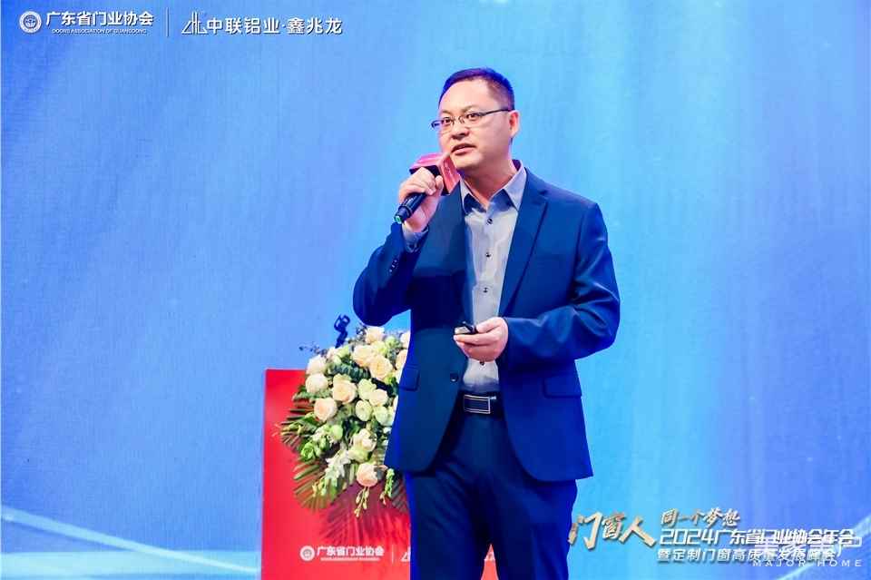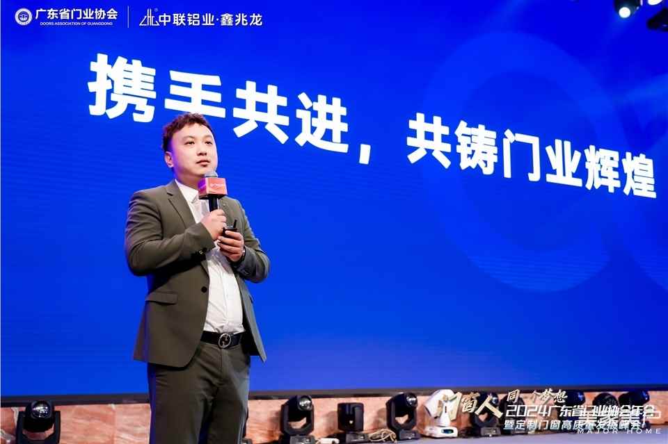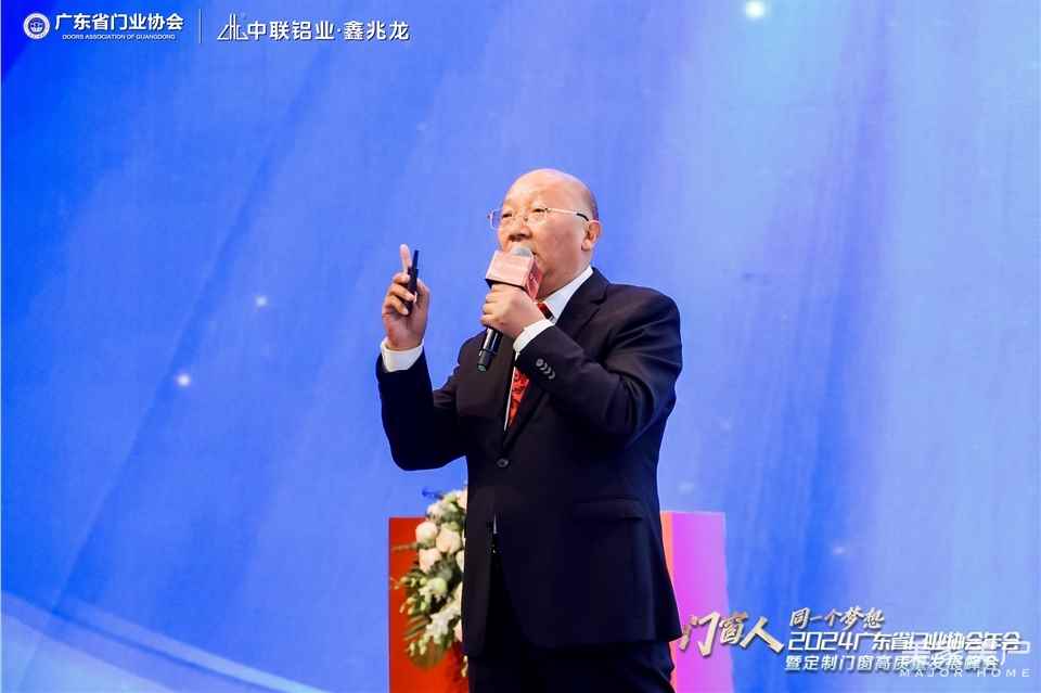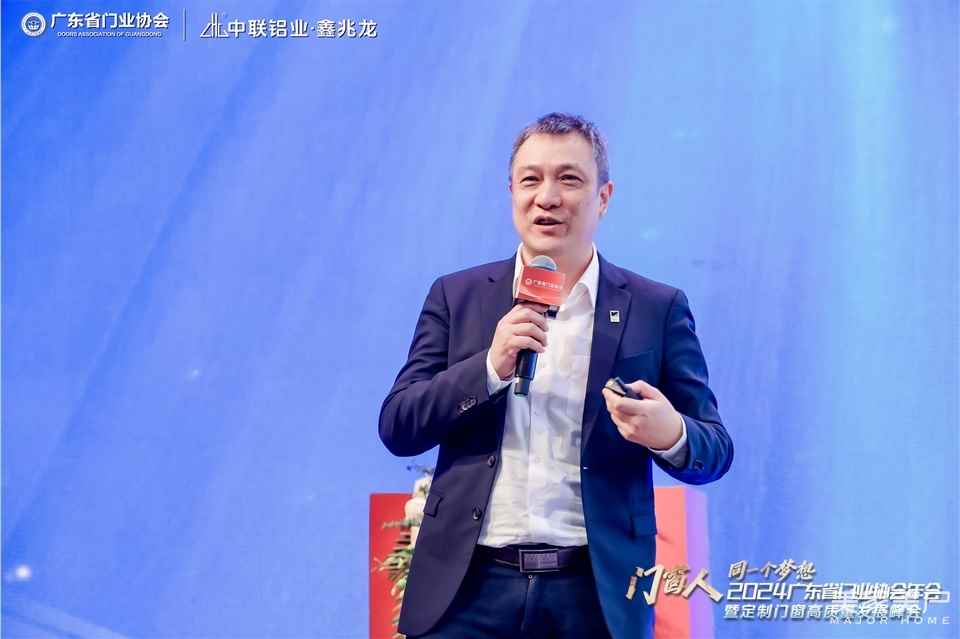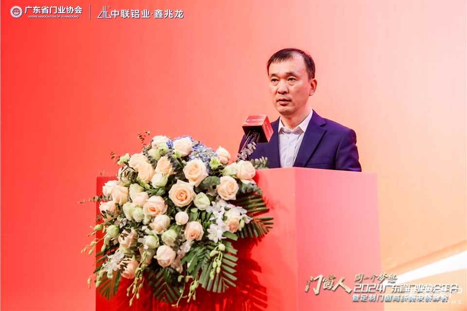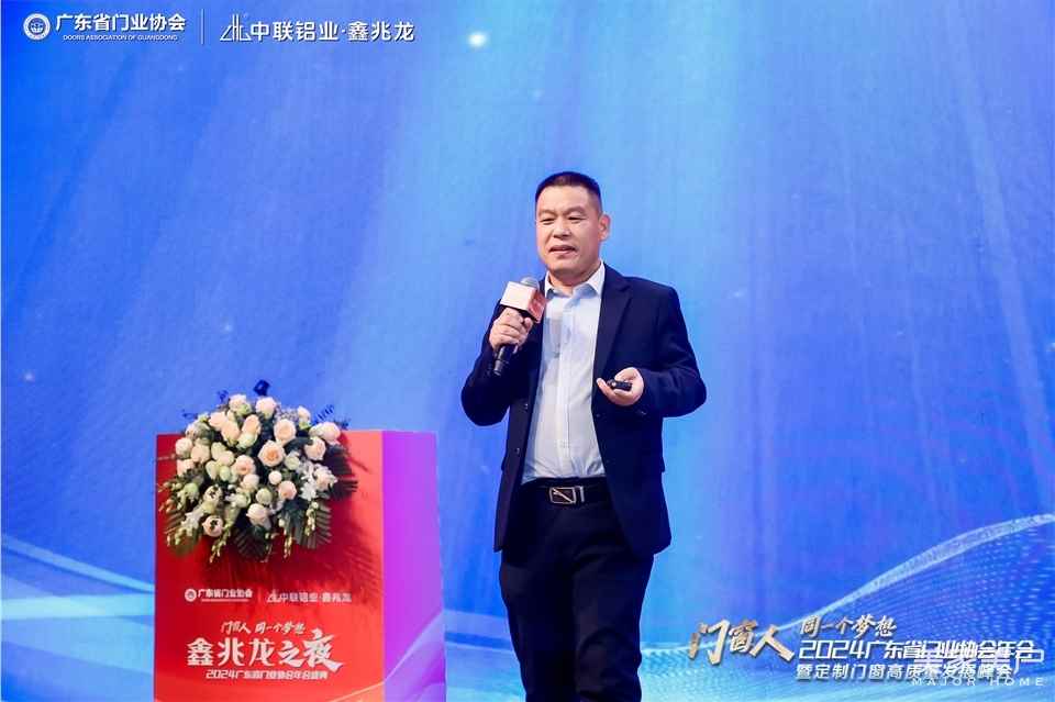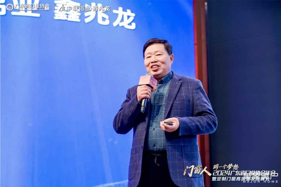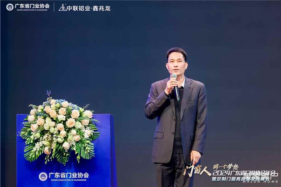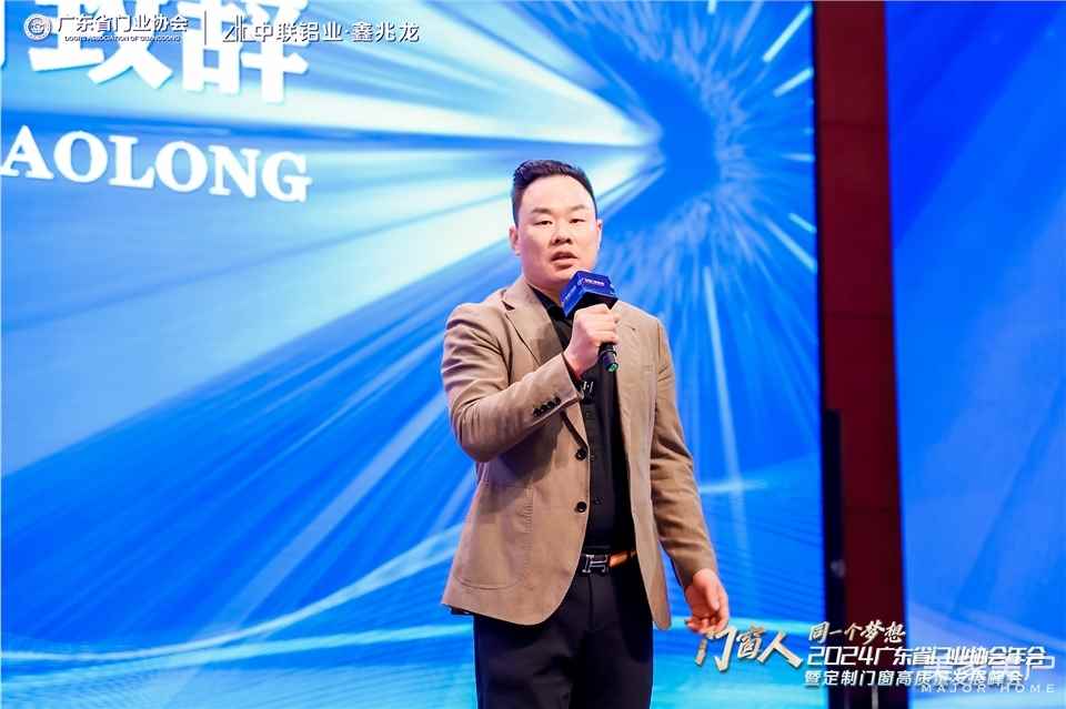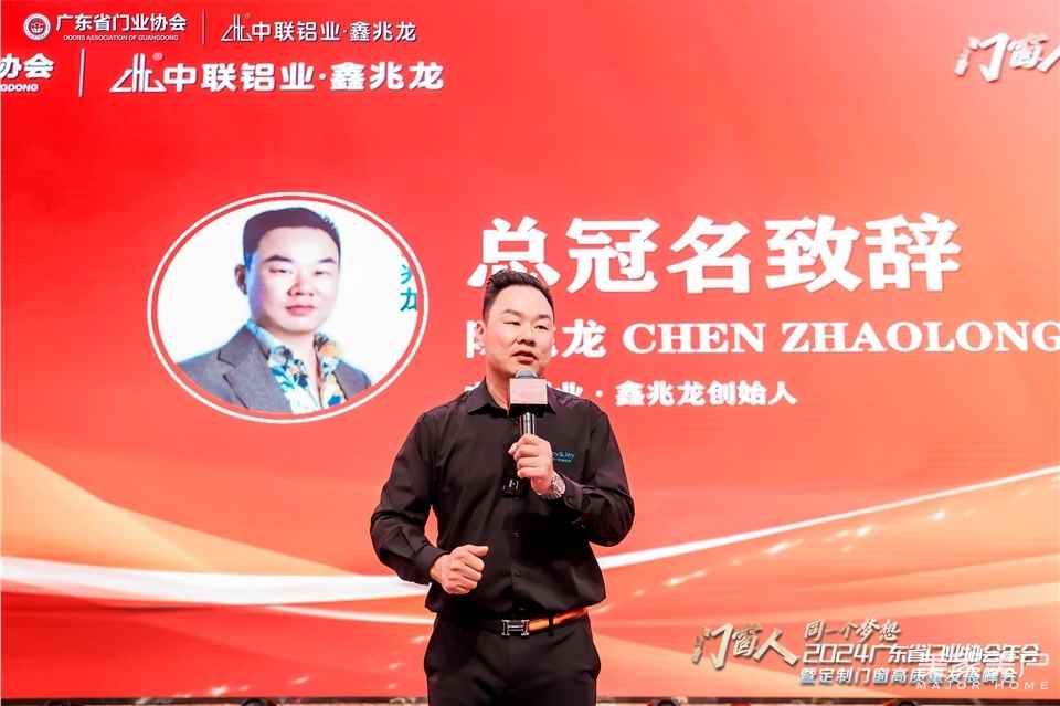 本次会议总冠名、中联铝业·鑫兆龙创始人陈兆龙在致辞中表示,“广东定制门窗行业逐步走向规范发展的道路,已涌现出一批优秀的门窗企业。鑫兆龙铝业致力于成为百年企业为梦想,并向着这一目标努力迈进,希望2025年,广东的定制门窗行业能够迎来新的飞跃,书写更加辉煌的篇章。”
