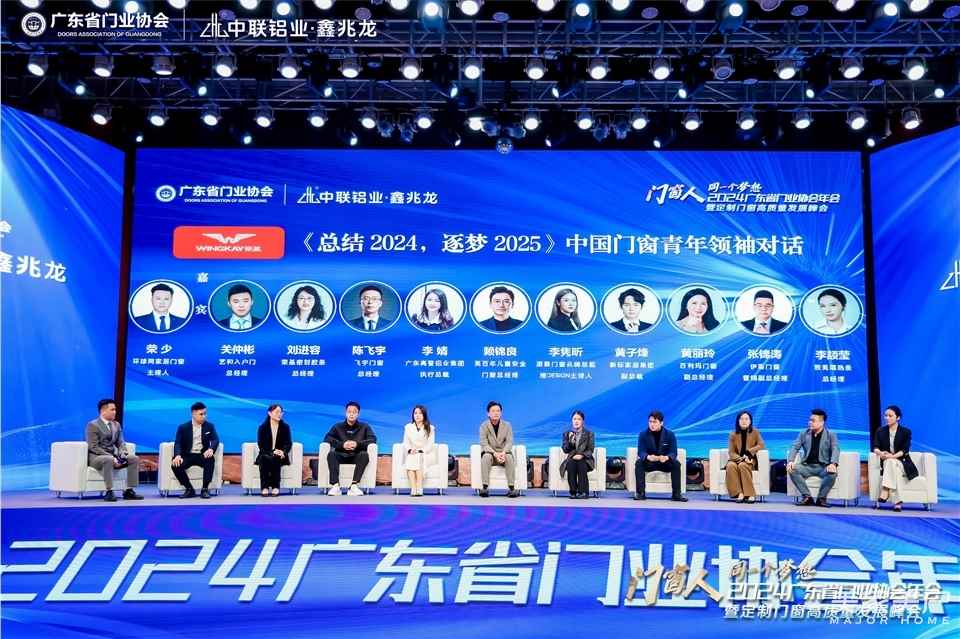 在由“荣基胶条”冠名的“中国门窗青年领袖对话”环节,荣基密封胶条总经理刘进容,派雅门窗品牌总监、雅DESIGN主理人李隽昕,美百年儿童安全门窗总经理赖锦良,飞宇门窗总经理陈飞宇,新标家居集团副总裁黄子烽,伊盾门窗营销副总经理张锦涛,百利玛门窗副总经理黄丽玲,艺和入户门总经理关仲彬,广东高登铝业集团执行总裁李婧,致美隔热条总经理李颉莹等门窗行业青年领袖总结了企业2024年的发展,并展望了2025年的规划。