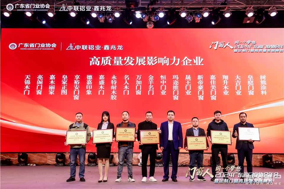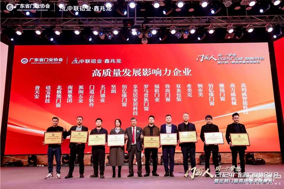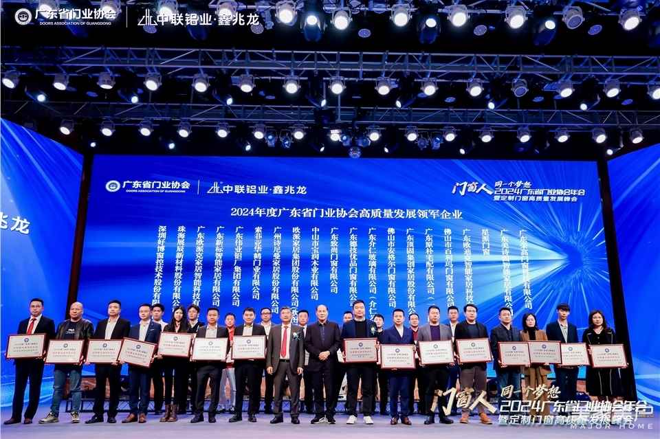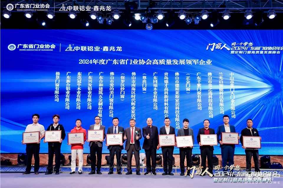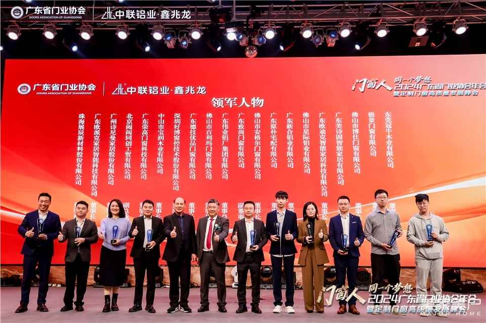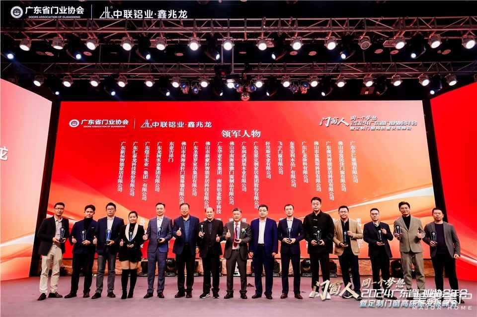从2012年成立以来,广东省门业协会充分发挥桥梁作用,积极推动广东省门窗行业发展,影响力持续攀升,会员规模不断壮大,成为拉动门窗产业增长的重要引擎。而广东省门业协会常委则是推动协会发展的核心力量。活动现场,广东省门业协会全体常委单位代表,共同走上舞台,被授予“高质量发展领军企业”殊荣。未来,他们依然会带动广东门业,成为定制门窗行业成就梦想的重要舵手。