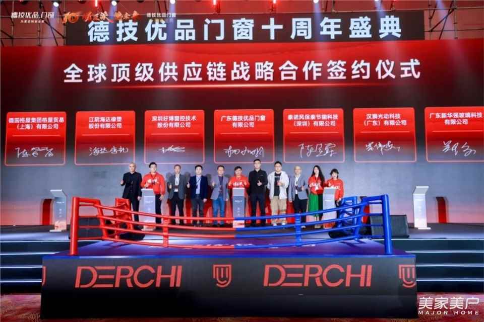 紧随其后的全球顶级供应链战略合作签约仪式,德技优品门窗与江阴海达、德国格屋、深圳好博、新华强玻璃、汉狮光动科技、吉茂铝业、泰诺风、希美克、高登铝业、硅宝科技等供应链单位达成深度战略合作,蓄力谱写新时代发展蓝图。这一举措不仅强化了品牌在高端系统门窗领域的技术壁垒,更标志着其从“中国制造”向“全球资源整合者”的转型。
