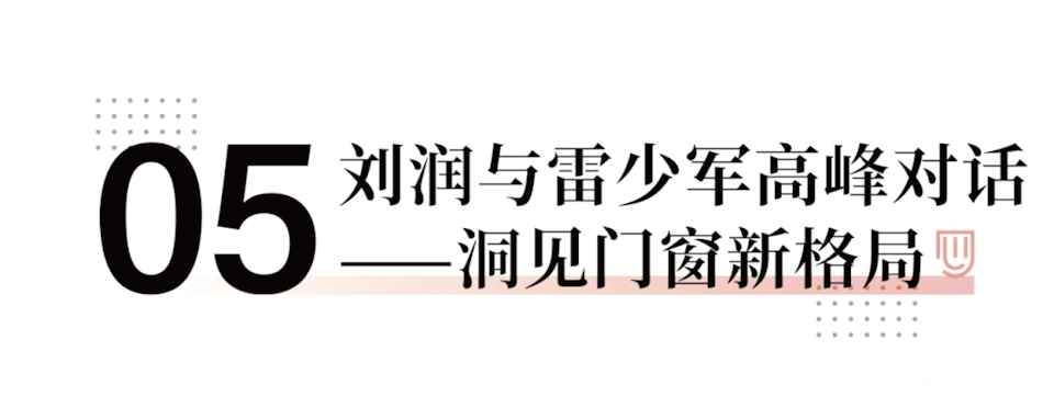 本次盛典邀请到了润米咨询创始人/企业战略咨询顾问/前微软(中国)战略合作总监刘润坐阵十周年,与董事长雷少军先生展开《洞见门窗新格局》高峰对话。本次对话环节是德技优品门窗十周年盛典的思想制高点,主要围绕消费升级、全球化浪潮、数字化革命三大议题方向,共同探讨门窗行业的破局与新生路径。