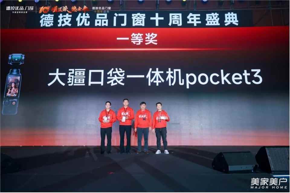 晚宴环节,德技优品门窗以“新十年之约”为主题,与大家开启一段举杯欢庆的温馨场景,现场多轮抽奖与现金红包派发将气氛推向顶点。