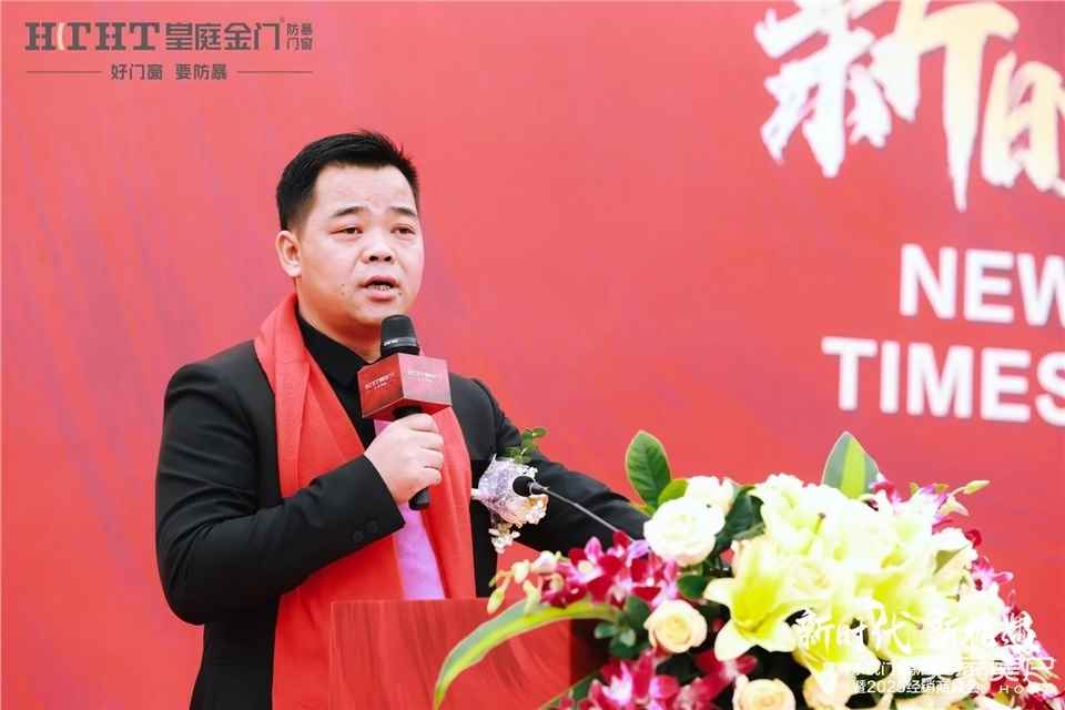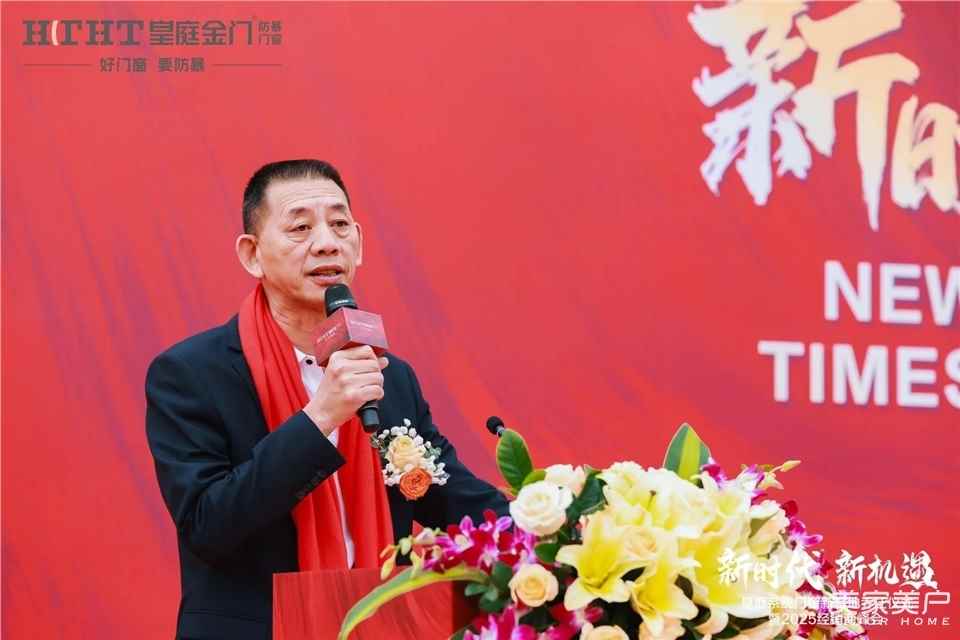 在热烈的掌声中,皇庭门窗董事长许云旺先生上台致辞。他回顾了皇庭门窗的发展历程,并对未来的发展蓝图进行了展望。他表示,新基地的落成是皇庭门窗发展史上的重要里程碑,公司将以此为契机,继续加大研发投入,提升产品品质,优化服务体系,为经销商伙伴创造更大的价值,为消费者带来更美好的家居生活体验。