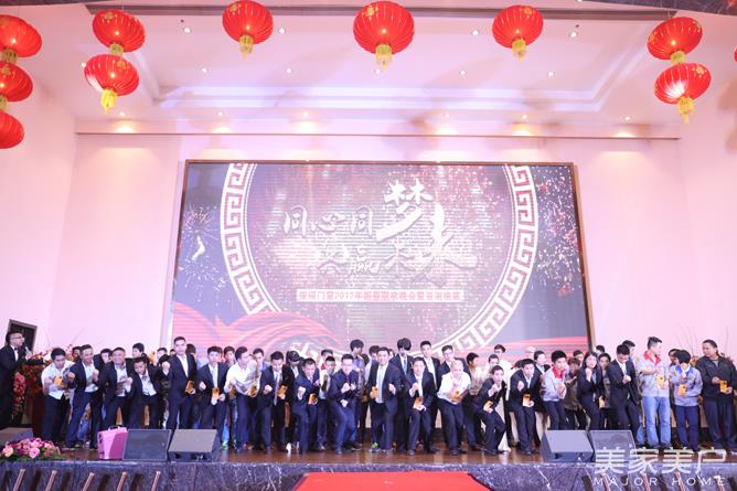 2017年1月6日,“同心、同梦、共赢未来——2017年俊福门窗集团(新帝豪、金福、俊福公馆)2017年联欢晚会”在佛山市南海区鸿福山庄盛大举行。俊福门窗全体员工、广东地区各大门企高管以及来自不同区域的经销商、供应商、各界朋友共聚一堂,借此机会共同回顾2016年经历的风风雨雨。