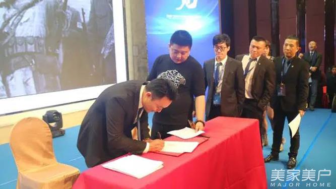 此刻现场来到了最激动人心的环节,2017是一场新的征程,更是一场新的挑战!因此,经销商家人们也在此时定下了新目标,2017年度对赌环节来临,销售经理王洪亮上台鼓励经销商家人们完成2017年度对赌目标!之后,陈礼周陈总上台与各经销商家人们进行对赌协议签订。
