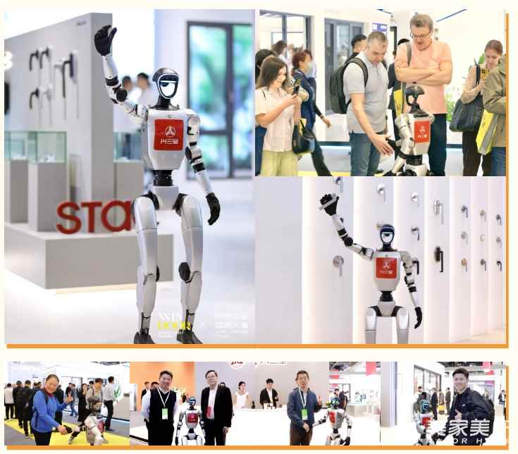 最吸引眼球的莫过于展位前的人形机器人,其独特的造型和先进的科技感吸引了众多来往客商纷纷驻足合影。