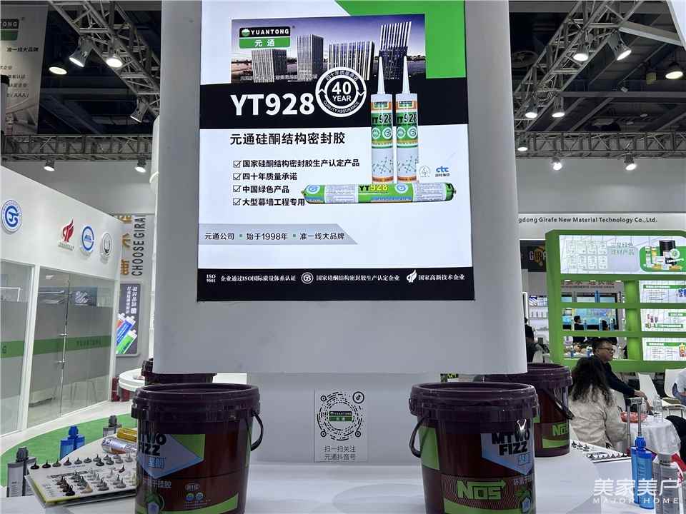 本次门窗幕墙新产品展,元通胶粘带来众多新产品及优势产品。刘国梁介绍,“新品YT12十二倍0级长效防霉胶,是专为厨房、浴室等易潮湿区域设计,采用先进配方,能有效抑制霉菌生长,守护家居环境的干燥与清洁。该产品使用的醇型技术,健康环保,无甲醛,是一款真正的绿色环保产品。”