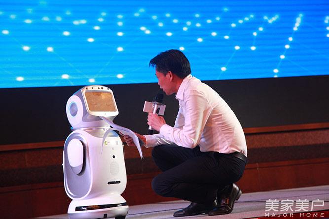 大自然家居董事长佘学彬与机器人小宝互动