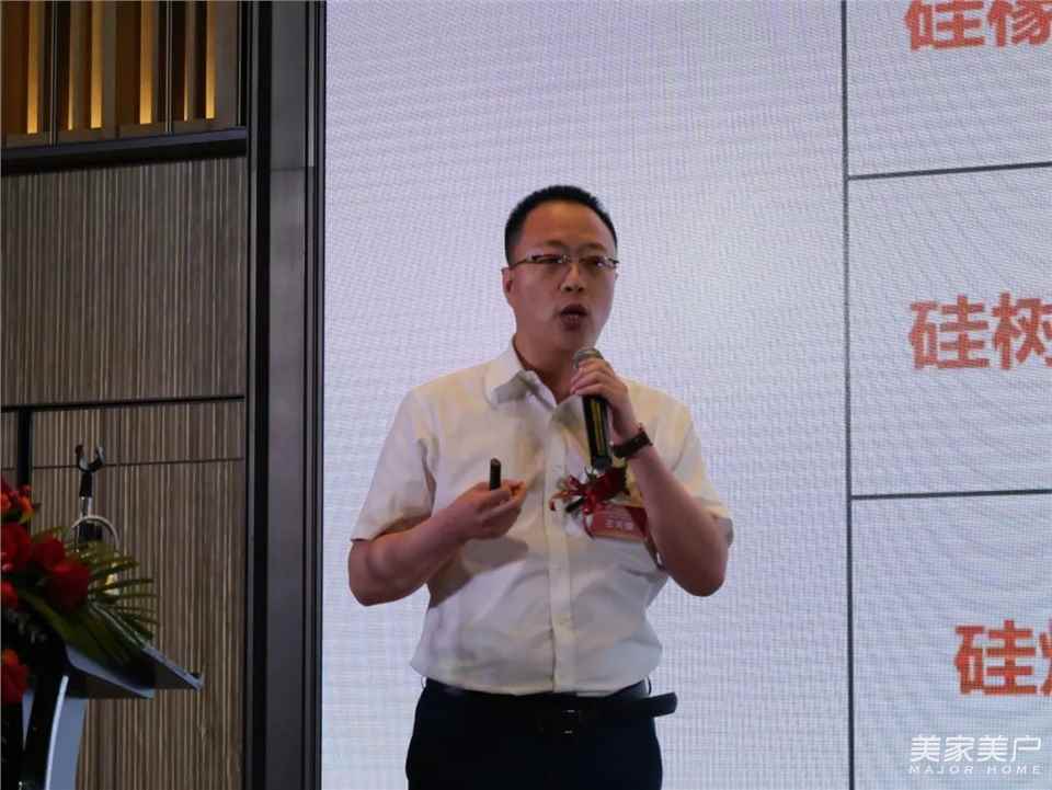 硅宝科技集团副总经理李国利作硅宝集团介绍。他讲到“技术创新”是硅宝科技的核心竞争优势,并从技术、规模、平台、品牌、检验、人才、认证7个维度讲述了硅宝当之无愧为中国有机硅密封胶的“第一品牌”。