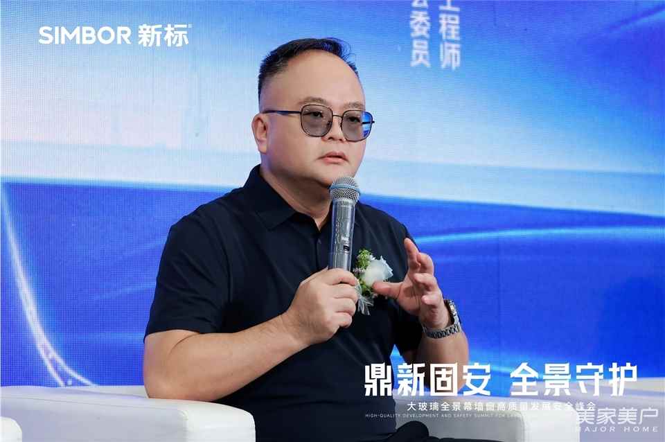 上海耀皮玻璃集团股份有限公司加工玻璃板块南方总经理 中国工程建设标准化协会建筑幕墙门窗专业委员会委员赵光豪发表了题为《全景视野与安全守护》的深度演讲。赵总凭借其在玻璃深加工与建筑标准领域的深厚积淀,聚焦现代建筑对大玻璃门窗日益增长的需求,深刻阐释了其核心价值与实现安全所必须跨越的技术门槛;同时指出,大玻璃需具备远超常规玻璃的卓越抗风压性能、超强的抗冲击性以及将自爆风险降至最低的可靠性,这对玻璃原片选择、深加工工艺及高品质辅材应用都提出了近乎严苛的要求。而新标大玻璃全景幕墙窗在这些方面表现突出,为行业发展提供了有力参考。