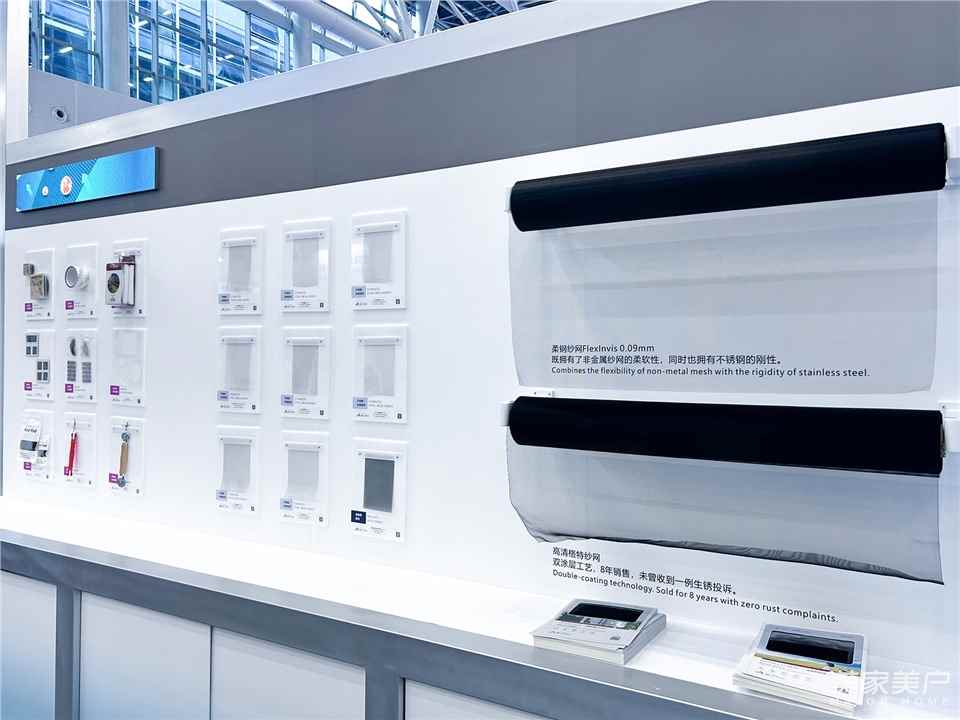 在此次展会上,冀安筛网推出了多款筛网新品。有用于建筑幕墙的,涵盖外立面、隔断、屏风等专用类型;还有新推出的纱门窗专用产品——卡本纳金刚网。这款产品目的是为了解决行业的中的一大难题——不锈钢纱网与铝型材接触产生的双金属腐蚀。这款产品采用的是加强后铝合金材质,其电位与型材接近,不易形成电腐蚀,大大降低型材氧化风险,更不容易让铝型材发白。而且这款产品已经通过1000小时的盐雾测试,是沿海纱窗的首选!