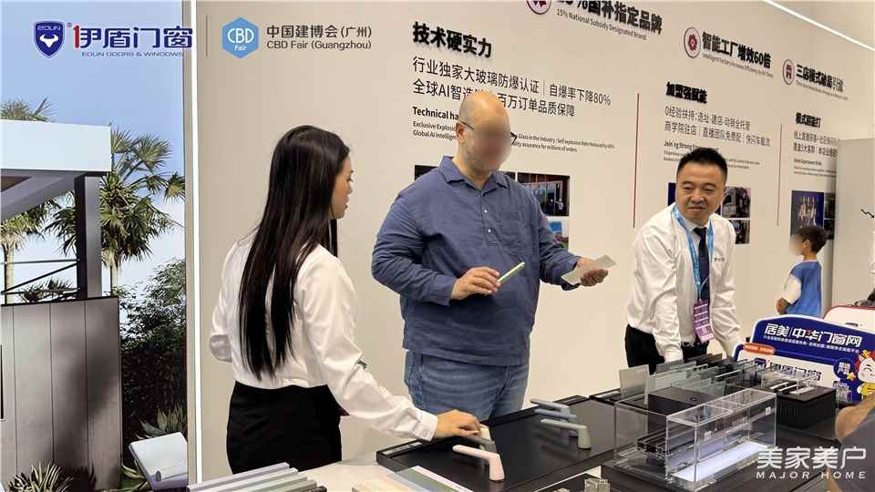 近年来,伊盾门窗持续推进品牌出海战略,广州建博会的智能新品也吸引了大量外国客商驻足咨询,深入交流伊盾产品技术与未来合作可能,让以伊盾为代表的中国高品质门窗实现世界共享!