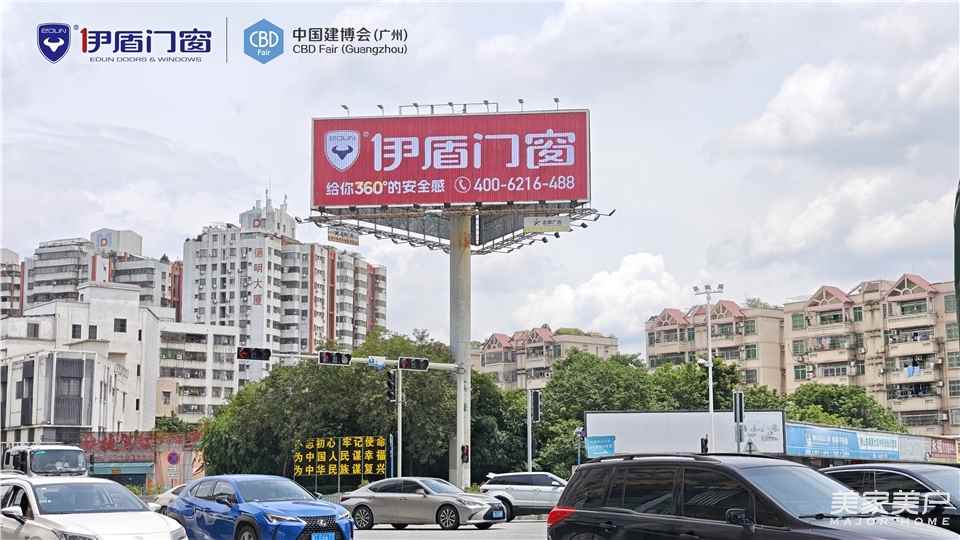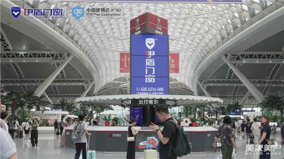 广州建博会期间,伊盾门窗更斥巨资在广交会展馆、广州南站、多个高速枢纽投放广告,多点位同频上新,伊盾品牌硬核实力强势出圈。