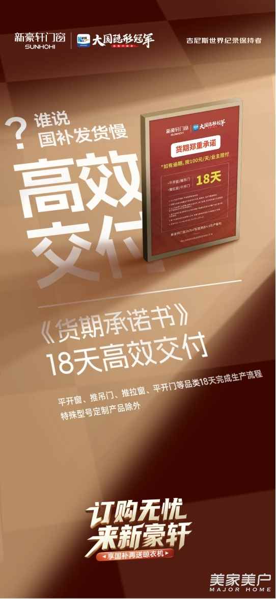 年中筑家季,福利享不停。7月18日-8月18日,新豪轩门窗送上「订购无忧」「价格无忧」「钜惠无忧」等三重无忧体验,活动期间不仅为下定用户免费送上订购无忧险,还在国补15%补贴基础上带来799钜惠好窗、智能晾衣机等重磅福利,刷新门窗装修钜惠体验!